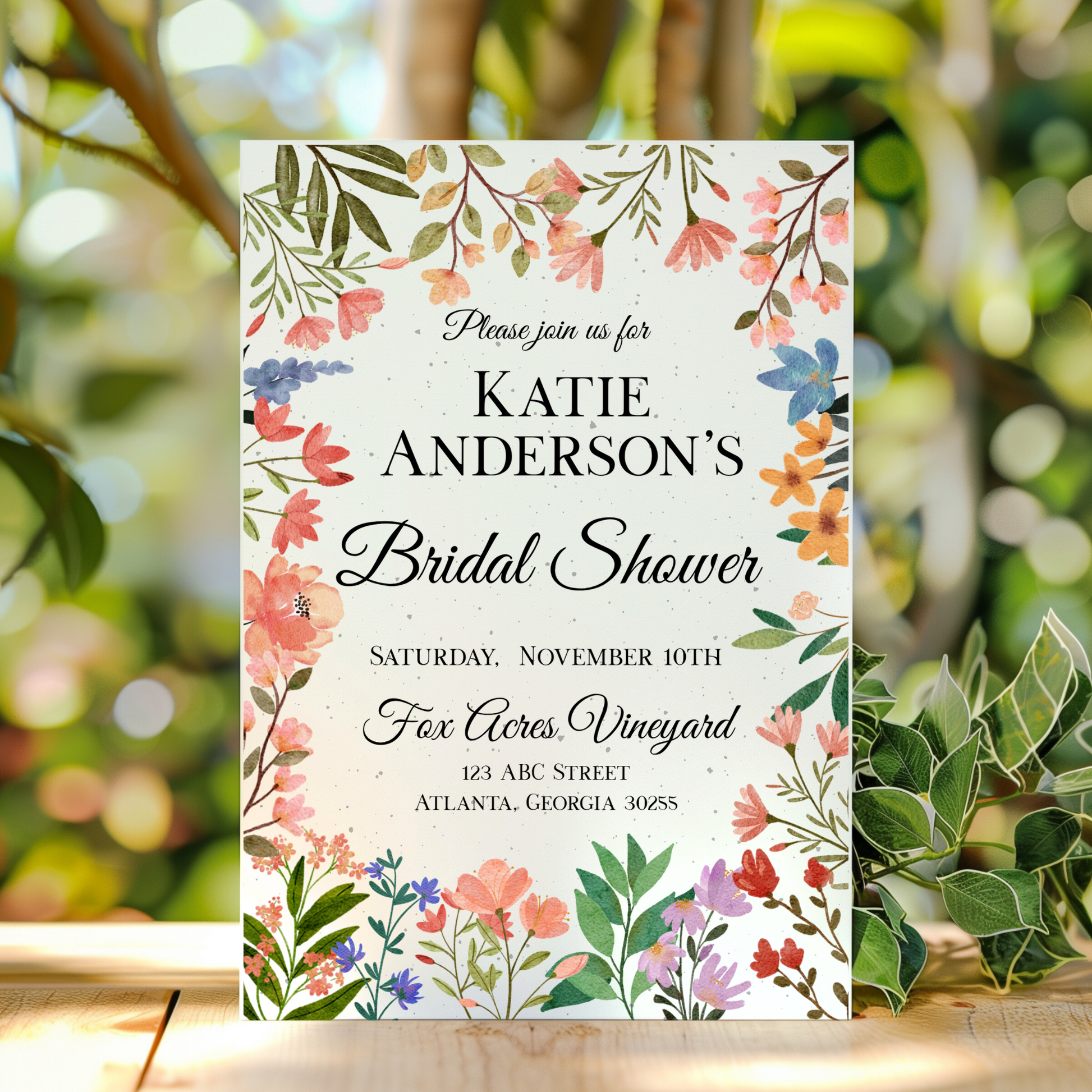 "Bloom with Love" Seed Paper Bridal Shower Invitation – 5x7" Floral Design