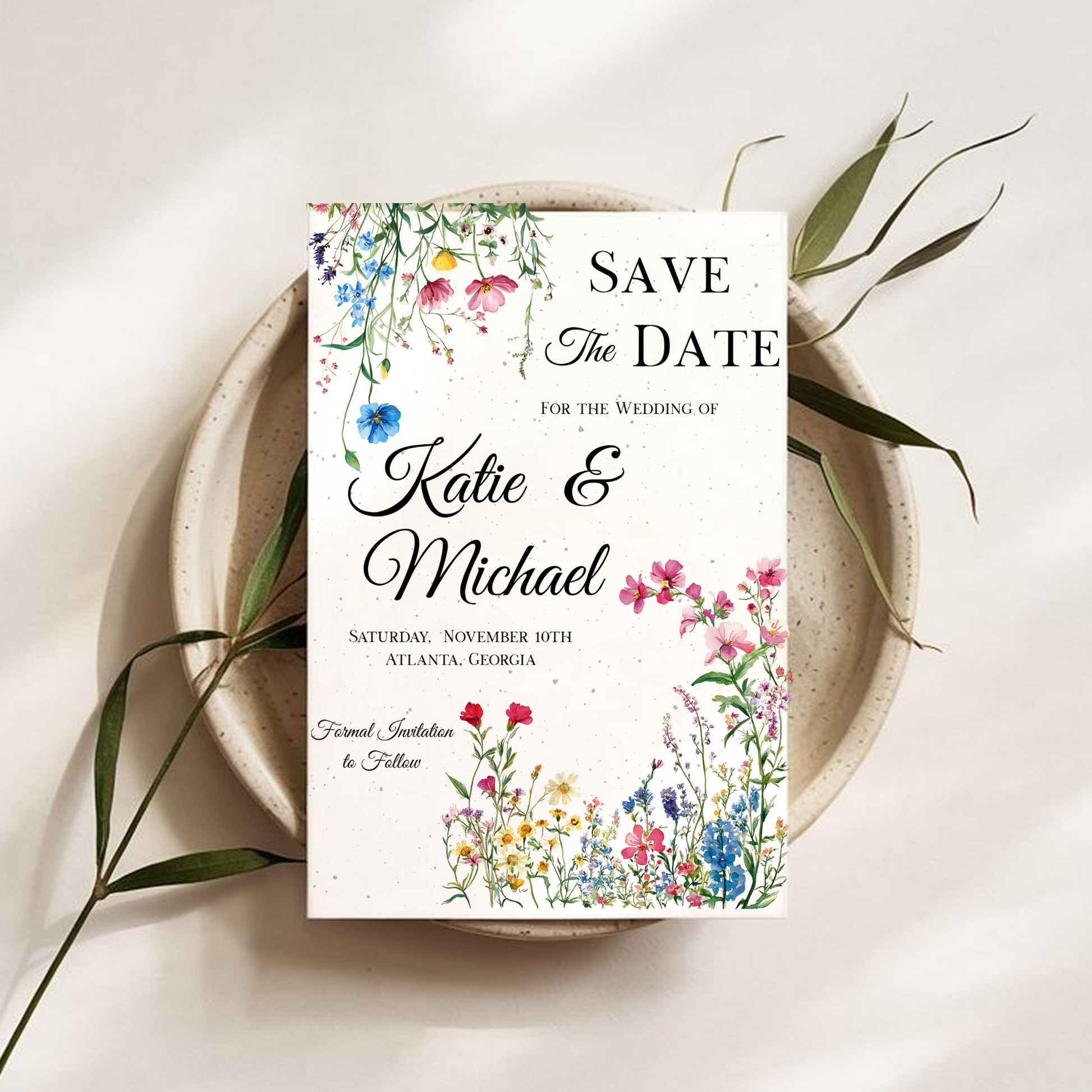 Wildflower Seed Paper Save the Date – Plantable Wedding Announcement (6x4")